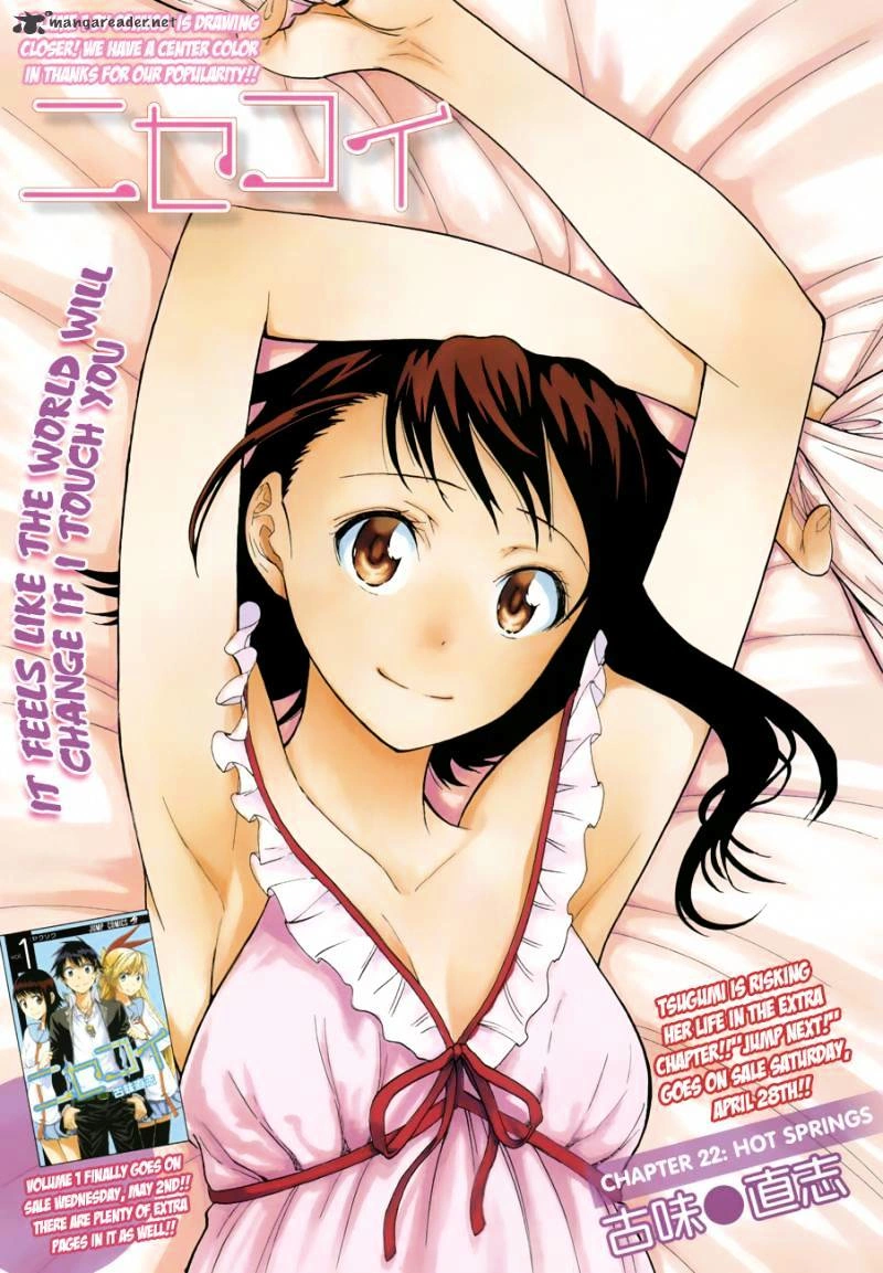 Hot Springs (オンセン, Onsen) is the twenty-second chapter of the Nisekoi manga series written and illustrated by Naoshi Komi, published weekly in the magazine Weekly Shōnen Jump.